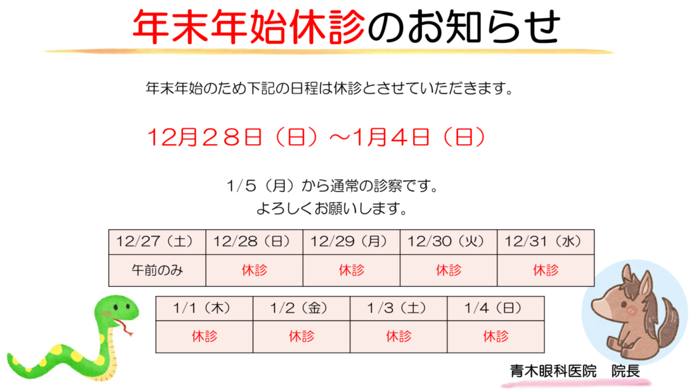 下記の通り、休診とさせていただきます。